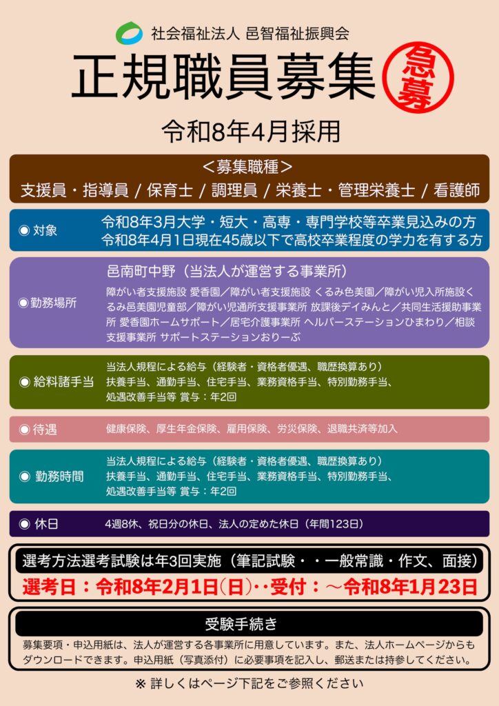募集要項・申込用紙(A4)は、当法人が運営する各事業所に用意しています